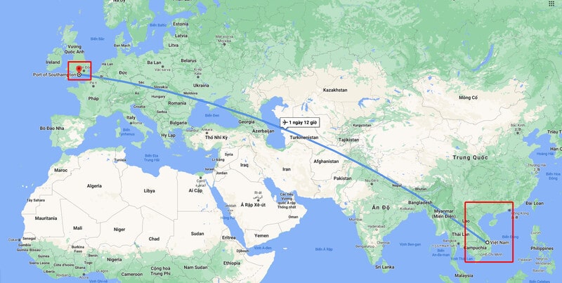 • Tuyến đường hàng hải bắt đầu từ Việt Nam đi qua eo Singapore và Malacca. Sau đó, tiếp tục di chuyển đến phía Nam eo Sri Lanka – Ấn Độ Dương và đi vào Hồng Hải. Tuyến đường đi qua kênh đào Suez vượt qua biển Địa Trung Hải và eo Gibraltar và dừng chân tại châu Mỹ.